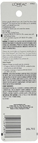 Achieve naturally defined brows with L’Oral Paris Brow Stylist Designer Brow Pencil. This easy-to-use brow pencil allows you to seamlessly reveal a soft, blended eyebrow makeup. Pro-Tip: Start with clean, brushed brows. Using the Precise Tip Crayon, fill in uneven areas with light, feathered strokes. Next, comb and blend using the Soft Brush Tip to define your arch. • Precise tip eyebrow crayon and spoolie • Achieve naturally defined brows • Soft, blended eye makeup • Easy to use Using the precise tip crayon, fill in uneven areas with light feathered strokes. Comb and blend using the soft brush tip to define your arch. Warning: Eye cosmetics in a scratched, infected or irritated eye and scratches from cosmetic eye applicators can lead to eye damage, and in extreme cases, even blindness. If your eye is scratched, stop using all eye cosmetics and go to an ophthalmologist immediately. Never apply this product in a moving vehicle.Feature