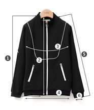 尺码 ①前衣长 ②后中长 ③胸围 ④下摆围 ⑤袖长 ⑥袖口围