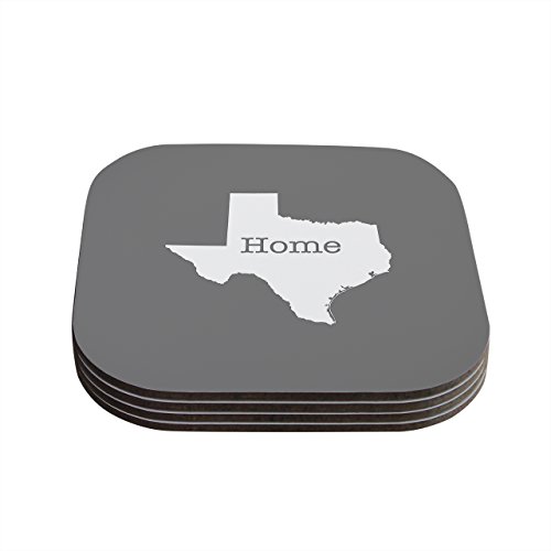 KESS InHouse Bruce Stanfield "Texas Is Home White Gray" Coasters (Set of 4), 4 x 4", Multicolor