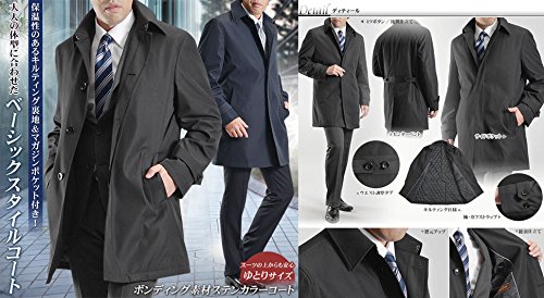 -. Title : ステンカラーコート ビジネス コート メンズ 黒 紺 ゆったり ボンディング素材 大きめ 撥水加工 比翼仕立て ややゆとり ビジネスコート 秋冬 CB80