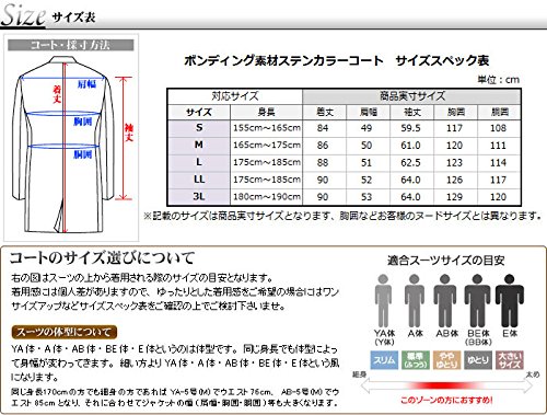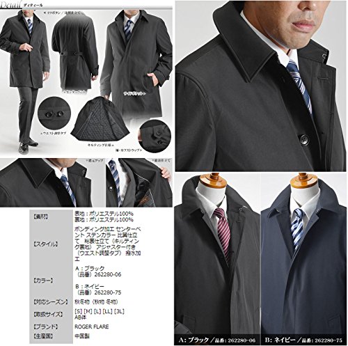-. Feature : 【対応シーズン】3シーズン (春物 秋物 冬物) / 【素材】表地:ポリエステル100% 裏地:ポリエステル100% / 【スタイル】ボンディング加工 センターベント ステンカラー 比翼仕立て 総裏仕立て(キルティング裏地) アジャスター付き(ウエスト調整タブ) 撥水加工 / 【カラー】A:ブラック/B:ネイビー / 【サイズスペック】画像のサイズ表をご覧ください。