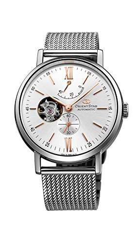 오리엔트 스타 모던 클래식 세미 스켈리턴,호평 시리즈에 NEW컬러가 등장.정평(스테디셀러)의화이트다이얼에,핑크 골드의 인덱스를 채용.12,6 시에 배치 된 로마 인덱스가 늠름하게 한 표정을 가합니다.더욱 더 완만한 봄베 문자판과박스유리,심플한 파워 리서브 표시가 모던인 인상을 줍니다.두께와 부드럽음을 겸해 구비한(갖춘) 메쉬 밴드는,슈트 스타일로부터,휴일의 캐주얼까지 폭넓게 합치는 것 를 할 수 있습니다./5기압 방수 성능/정밀도:일(날) 차이+25초~-15초/구동 시간:40시간 이상(최대권 인상 시)/24석/초침 정지 장치 부착/파워 리서브 표시 기능/시 스루(see through) 백/내자1종/Made in Japan