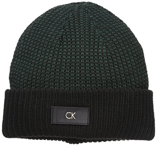 (Calvin Klein)/Accessories/Scarves/DIRECT FROM USA/Calvin Klein Women's Marled Beanie With Logo Patch With Fuzzy Lining Accessory, Malachite, One Size