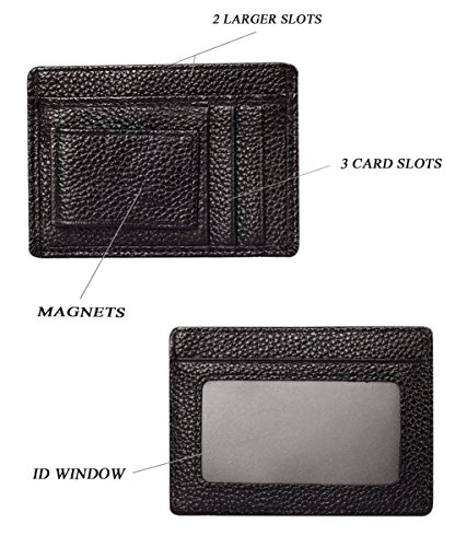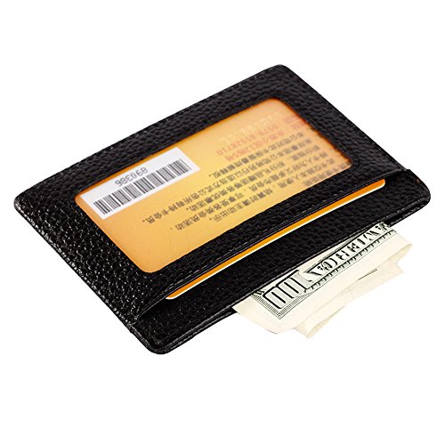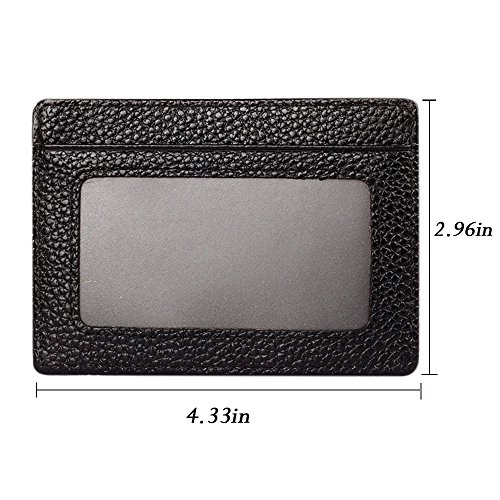 -. Feature : ★ SLIM AND PORTABLE: 4.33 " x 2.96" x 0.16" (11cm x 7.5cm x 0.4cm), Large capacity multi-card slot, you can store bank cards, credit cards, ID cards / ★ MINIMAL & COMPACT: Super slim design makes it easy to slide into your front or back pocket; clear finger glide for the ID window making it quick and easy to take your ID card or driver license out or put it in / ★ MATERIAL & STRUCTURE: Color bright, good sense of light, there are details of the truth, purely real shot. The first layer of skin, Stylish, simple, fashionable, soft texture. 3 card slots, 1 ID window and 2 money or receipt pocket / ★ SPECIAL STITCHING: Excellent workmanship, clear and uniform stitching, quality and durable sewing thread / ★ RFID BLOCKING TESTED: Our wallets have been tested for 13.56 MHz Frequency in which our credit cards, debit cards, driver license and ID cards operate. PLEASE BE NOTED THAT the signal of some ID badge, access cards and hotel room cards which operates in 125 KHz cannot be blocked by this wallet