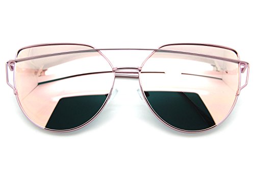 LARGE-OVERSIZED-CAT-EYE-SUNGLASSES-METAL-FRAME-FLAT-MIRROR-LENS-WOMEN-FASHION ROSE GOLD MIRRORED