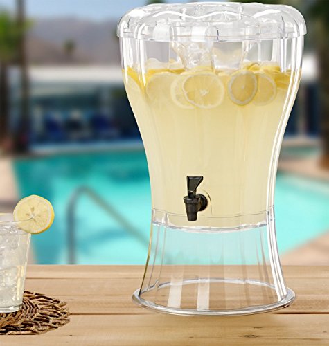 Unbreakable 3-1/2-gallon beverage dispenser with removable Ice-Cone. Features graduated liquid measure marks, No-drip tomlinson faucet, non-slip lock-on base. Made from stain-resistant, BPA-free tritan. Dishwasher safe. Made in USA.Feature