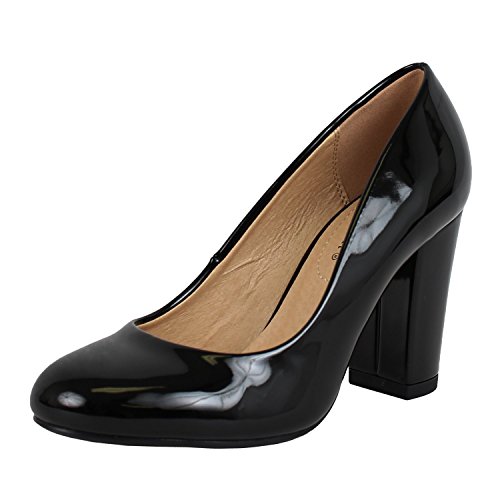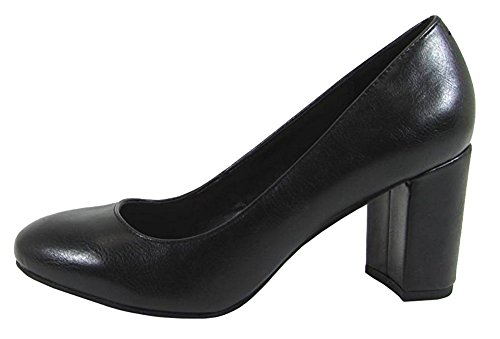 City Classified Comfort Women's Round Closed Toe Chunky Block Mid Heel Pump
