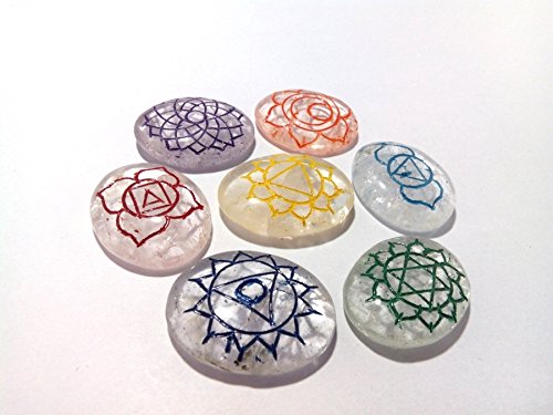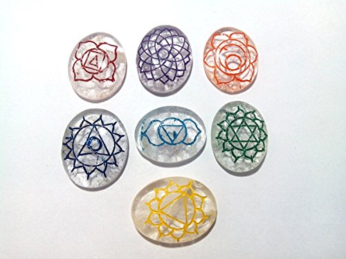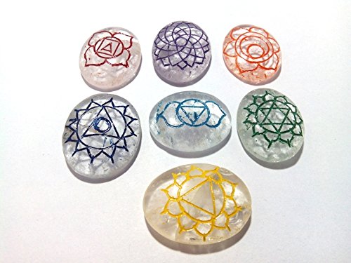 WholesaleGemShop Clear Crystal Quartz Engraved Oval Set for Healing Reiki Crystal