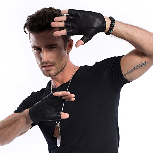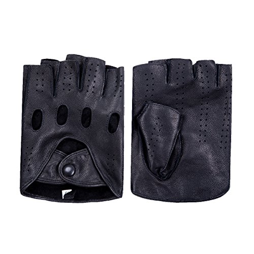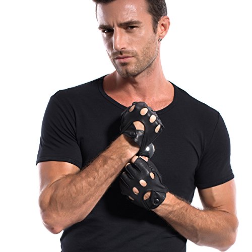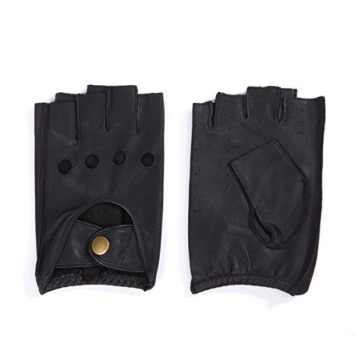 -. Title : MATSU Mens Super Soft Fingerless Driving Leather Black Gloves Available for Rivets DIY M813