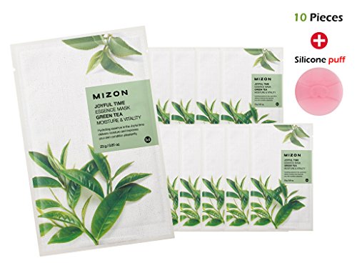-. Title : [Mizon] Joyful Time Essence Mask Sheet - Green tea(10pcs) + Silicone Puff