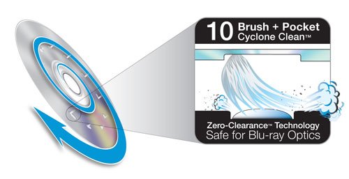 - Feature : Can help fix or prevent Blu-ray discs, PS3 games, DVDs and CDs that don't play, load slowly, skip or freeze during playback / 10-brush Cyclone Clean Process removes dust, dirt and debris from the laser lens / Exclusive Zero-Clearance Technology: brush + pocket design is safe for all players / Included Home Theater Image & Sound Calibration Tools help maintain ideal audio and visual playback settings, with on-screen and voice instructions available in English, German, French and Spanish / Also safe for DVD players, PS3, XBOX and XBOX 360 gaming systems and computer disc drives