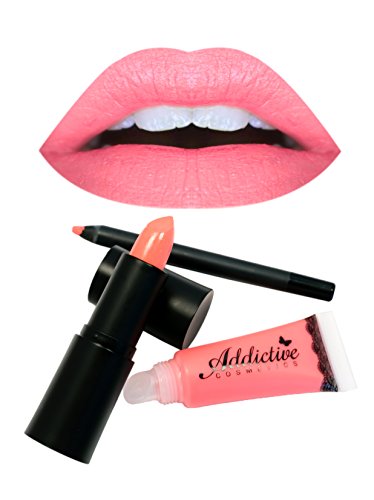 -. Title : Coral Lipstick, Lipliner and Lip Gloss Set by Addictive Cosmetics- All Natural Organic Lipstick, Liner and Lip Gloss- Vegan Friendly and Cruelty Free Cosmetics- Made in the USA- CORAL REEF