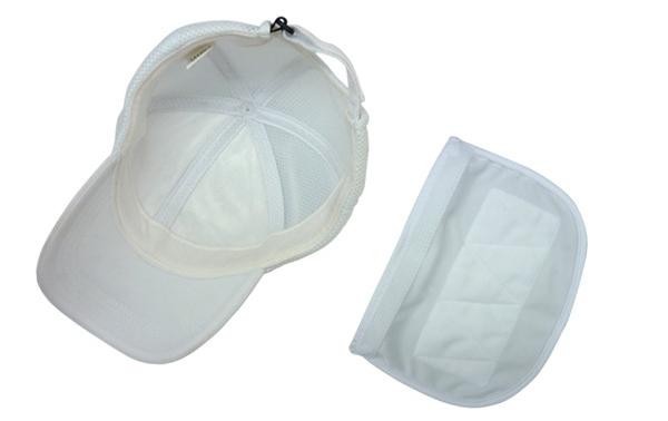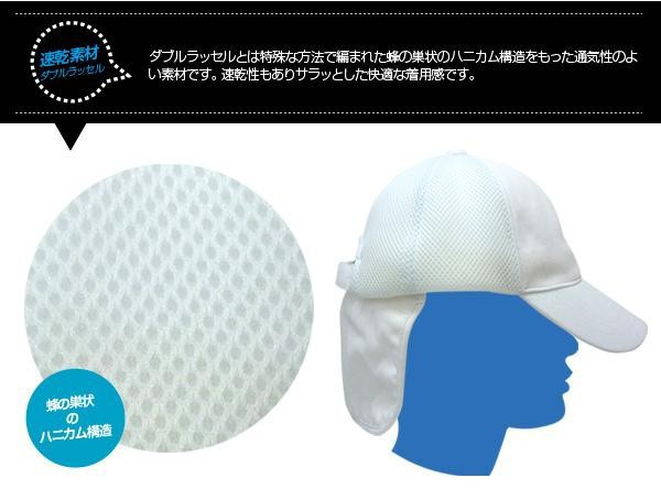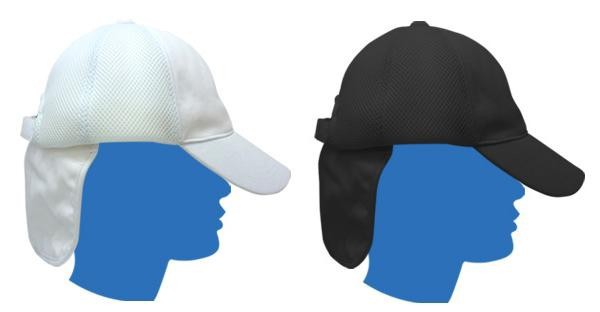 | 水分が循環して気化熱効果が全体に行き渡る画期的な特許取得済みの熱中対策帽子です。帽子の前立部分、汗取り部分、テープ部分を水分が循環するように設計されています。高吸水繊維ベルオアシスと速乾素材ダブルラッセルを使用し快適な着用感を実現しました。首筋を守る垂れは取り外し可能で使い勝手が広がります。 |