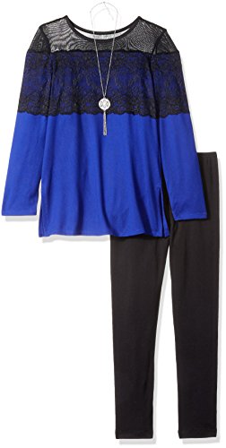 Amy Byer Big Girls' Long Sleeve Lace Top With Legging, Cobalt, Large