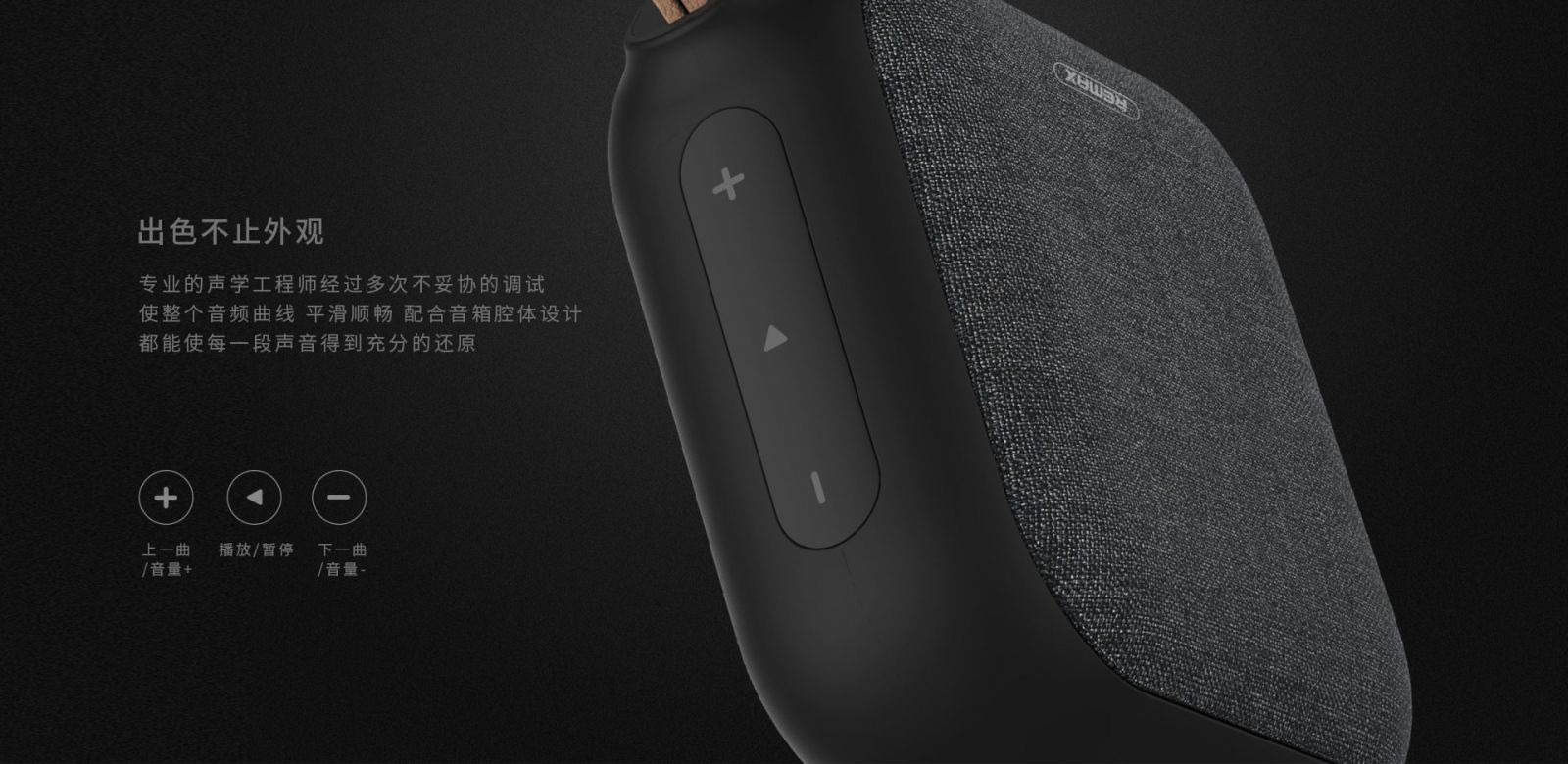Speaker Remax ini hadir dengan bentuk portable dan terbuat dari bahan kain pada bagian grill speaker. Speaker ini juga dilengkapi dengan sebuah lanyard untuk memudahkan Anda membawa speaker ini.