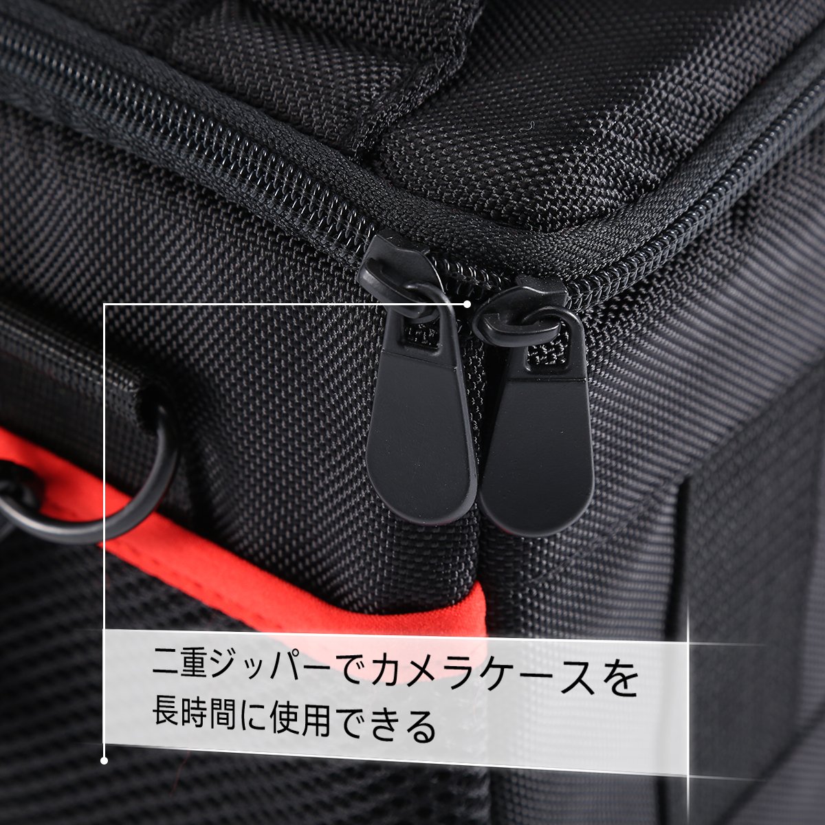 - Double zipper allows camera case to be used for a long time.