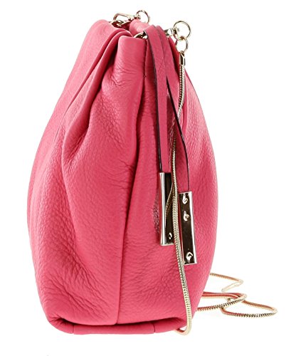 Pebbled leather bag with top zip closure; Gold-toned hardware