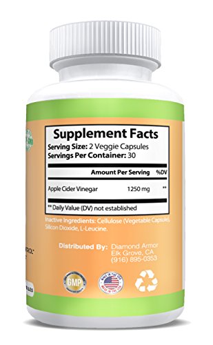 -. Feature : ✔100% ALL NATURAL & HIGHLY POTENT APPLE CIDER VINEGAR: Our supplements are made using our unique 100% natural detox formula of all natural ingredients to provide you with a safe, reliable and effective way to detox, lose weight, control blood cholesterol, stabilize blood pressure, help digestion and so much more! It's completely free from any additives or chemicals to ensure potency and high quality. / ✔PERFECT WEIGHT LOSS SOLUTION: Whether you want to lose a few pounds or get your body ready for the summer, this healthy weight loss apple cider supplement will help you lose weight the safe way. Thanks to the amazing cleansing properties of apple cider, it helps flush out impurities found in the system to help boost metabolism and digestion to help you gain the slim figure you've always wanted. / ✔CLEANSER, DIGESTION & DETOX SUPPORT: Besides being an effective natural weight loss solution, Diamond Armor's apple cider vinegar pills are the perfect choice to promote healthy digestion, weight management, and detoxification. Now, you can finally say goodbye to acid reflux and hello to healthy digestion and helps keep the intestines, liver and your body detoxified to prevent bloating, gas and indigestion. / ✔NO TASTE OR DISCOMFORT: From being a natural detox supplement to a natural weight loss solution, Apple Cider Vinegar is known for its amazing benefits but that doesn't change the fact that it has a harsh and unsettling taste in liquid form. Our vegan capsules are made to prevent any taste, odor or discomfort when you're taking our supplements so that you can enjoy all the pros without any cons. / ✔TOP QUALITY YOU CAN TRUST: At Diamond Armor, customer satisfaction is our top P.R.Iority. Our Apple Cider Vinegar Supplement is FDA & GMP Certified to ensure you that you're getting the safest and most effective supplements on the market. Each purchase is backed by our 30-Day Warranty so that you can buy with confidence knowing you're making a risk free investment.