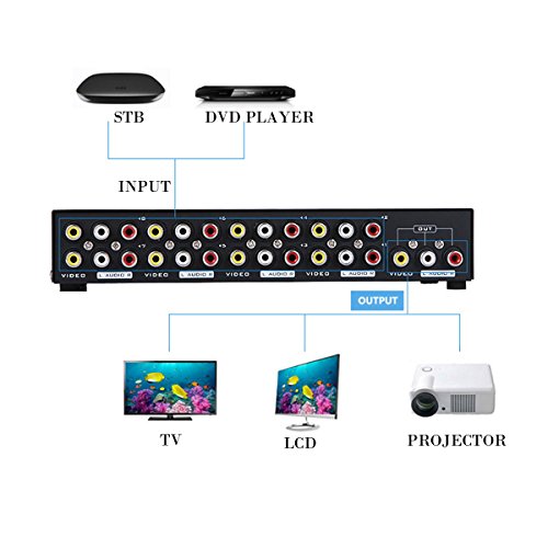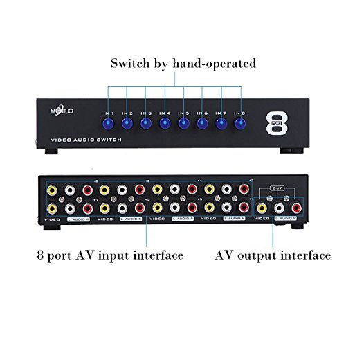 AuviPal 8-Port RCA AV Switcher 8 Input 1 Output Composite Video L/R Audio Selector Box for 8 Media Players DVDs TV Boxes Share 1 TV