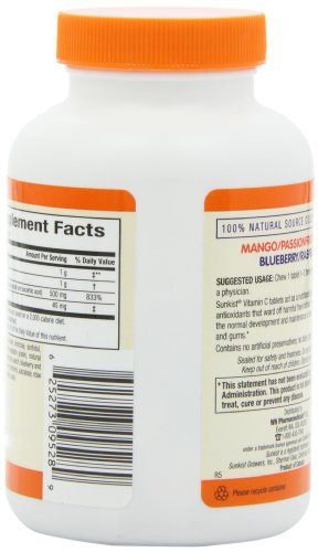 Vitamin C chewable mixed fruit, 500 mg, 90 tablets. Kids of all ages love the juicy fruit flavors of delicious vitamin C chewable mixed fruit. This formula provides immune system support, wound repair, strong bones and teeth, and healthy gums. Two exotic flavors: Mango, peach and blueberry or raspberry.Feature