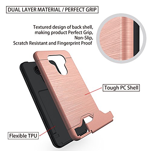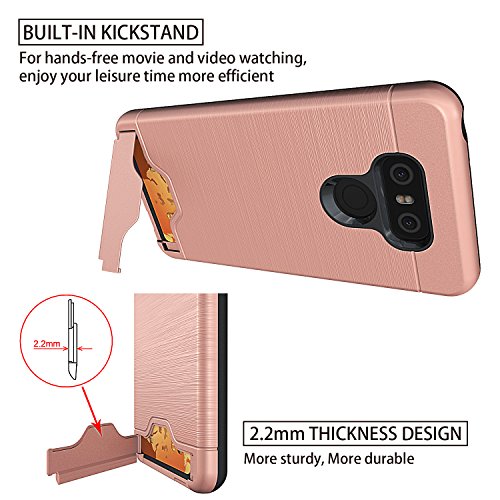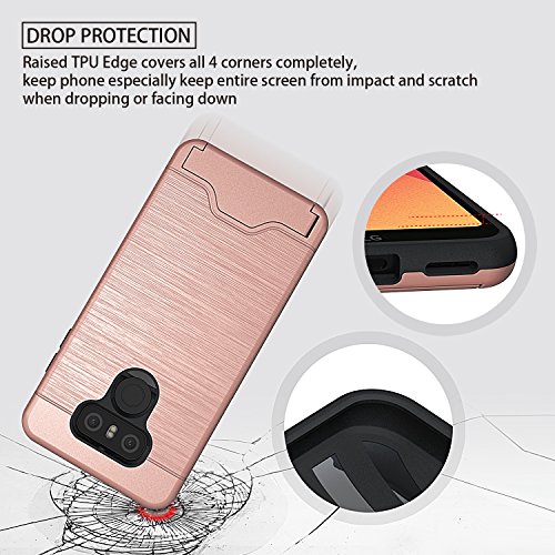 LG G6 Case,LG G6 Card Case with HD Screen Protector,NiuBox [Card Slot Wallet Fits 2 Cards] [Kickstand] Dual Layer Hybrid Shock Absorption Protective Phone Case for LG G6 (Verizon 2017) - Rose Gold