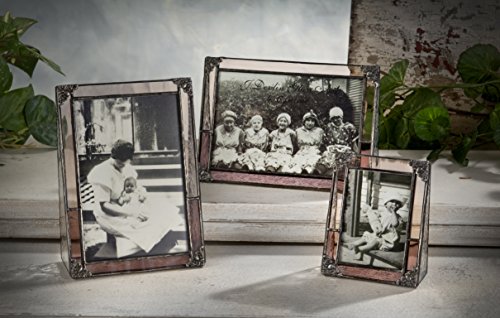 Champagne and pink rose stained glass give this horizontal glass picture frame a soft feel. Designed for 4" x 6" images, this whimsical picture frame includes elegant corner accents and vintage-inspired clear patterned glass sides and base. Interesting, perfectly sized, and warm, it works well in any room or as a gift or any special girl in your life. This unique design is available in several sizes to complete your desired look. J. Devlin Glass Art stained glass picture frames are lead free.Feature