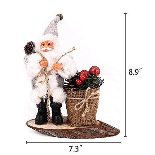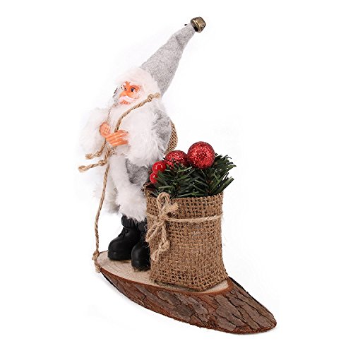 QTMY Christmas Xmas Home Decorations Doll Ornaments Santa Claus Figure with Storage Bag Wood Stand