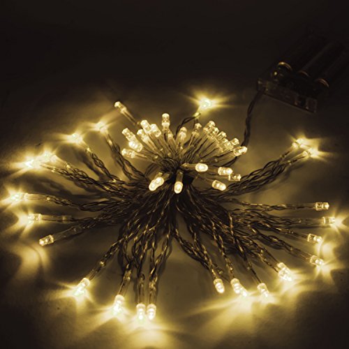 ALEKO 50 LED 16 Feet Battery Operated String Lights Christmas Holiday Lights Warm White Color, Lot of 5
