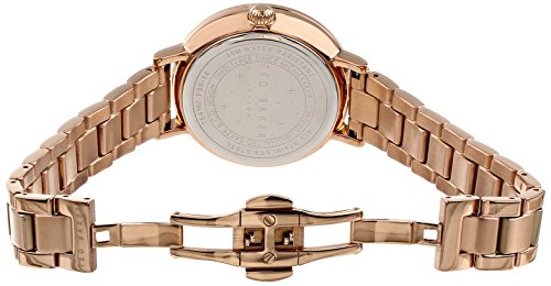 Updated Manufacturer SKU: 10018717 - Dress watch, Japanese quartz movement, Polished rose-gold-tone hands with luminous accents, Applied polished rose-gold-tone markers at twelve, three and nine o'clock, Black indices form minute track, Analog date aperture, Brushed brown dial with black logo, Polished rose-gold-tone stainless steel bracelet with brushed inserts, adjustable links and push-button-butterfly-clasp, Polished rose-gold-tone stainless steel bezel with mother-of-pearl concave ring and genuine Swarovski® crystal embellishment, Oversize polished rose-gold-tone stainless steel round case, Textured rose-gold-tone steel crown, Stainless steel caseback, Mineral crystal, 5 ATM (50 meters/165 feet water resistant)Feature