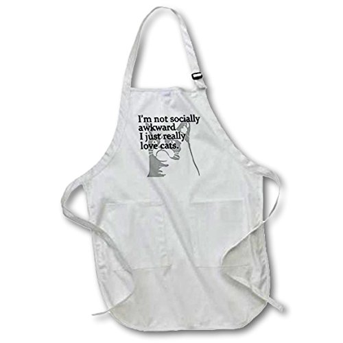 3dRose apr_193321_4 Im Not Socially Awkward I Just Really Love Cats Full Length Apron with Pockets, 22 by 30", Black