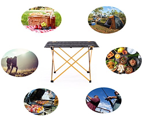 HIGH DURABILITY: Made of 600D ripstop Oxford cloth with high-strength aluminum alloy frame. Our ultralight waterproof folding table weights only 1.7 pounds which supports up to 33lbs/15kg. Long-lasting life time and will not get rust.