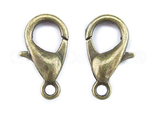 100 CleverDelights Lobster Clasps - 12x6mm - Antique Bronze Color - Jewelry Findings