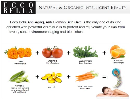 -. Feature : A titanium dioxide or zinc oxide sun block will prevent years of wrinkles and age spot damage. / Other sun blocks are not as effective / Lutein, lycopene, astaxanthin, CoQ10, Vitamin E and Vitamin C are proven to help skin retain its natural beauty / Doctor approved, anti-aging, natural and organic skin care that is preservative-free for sensitive skin / Ecco Bella guarantees you will be exuberant over these natural beauty products