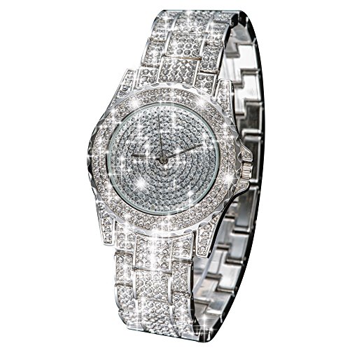 -. Feature : It's like real diamond, Bling Bling. / High quality Stainless Steel Clasp ,Japanese Quartz movement with analog display / Maybe the band is long and not fit for your Wrist,We attach you one Tool, You Can Remove the Link and short the band longth / Case Diameter: 3.5cm Band Width: 2.0cm, Band Length: 20cm TWO year Warranty