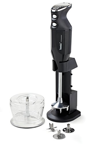 Studio : Victorinox Swiss Army Inc Publisher : Victorinox Swiss Army Inc Product Description Hand blend fresh ingredients with ease with this immersion blender from the Bamix De Luxe 150 line. Made from high carbon stainless steel, the blades are durable and long lasting. The set comes with three blades, a table stand, and a grinder, and it functions as several appliances in one, including a blender, a food processor, and a mixer. Whisper quiet during use, it has an airtight construction that allows liquid immersion past the neck for larger capacity jobs. Featuring two speed settings for every task, it includes a multi-purpose blade, a beater, and a whisk. The multi-purpose blade chops, shreds, blends, and stirs, including frozen food and ice cubes. The beater beats, aerates and froths, for sauces, espuma, and meringue. The whisk is great for salad dressings, omelets, puddings, and batters because it stirs, purees, and emulsifies. 14-1/2a€œ L x 9-1/4a€œ W x 4-3/10a€œ H 0