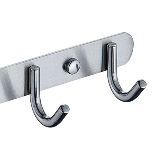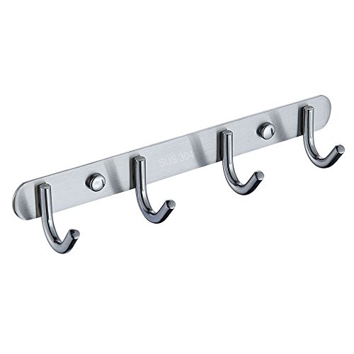 Towel Hooks, KWELS Stainless Steel Wall Mounted Clothes Coat Command Hook Hanger with 4 Heavy Duty Hooks