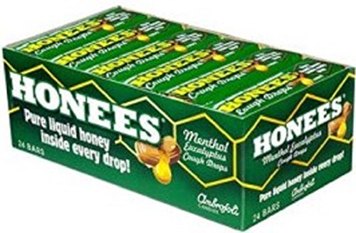 Studio : Ambrosoli Publisher : Ambrosoli Binding : Misc. Product Description The Honees Cough Drops is a hard candy that is filled with liquid honey and eucalyptus. It is a great-tasting remedy for cough and sore throat. Its pure honey component naturally soothes an itchy and sore throat. This candy also relieves coughing and cools nasal passages, making you feel comfortable. No artificial colors or flavors are included in the ingredients. The candy is also non-GMO and gluten-free. Honees Honey Menthol Cough Drops is available in a pack of 24 candies. 0