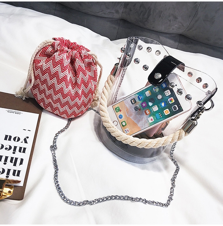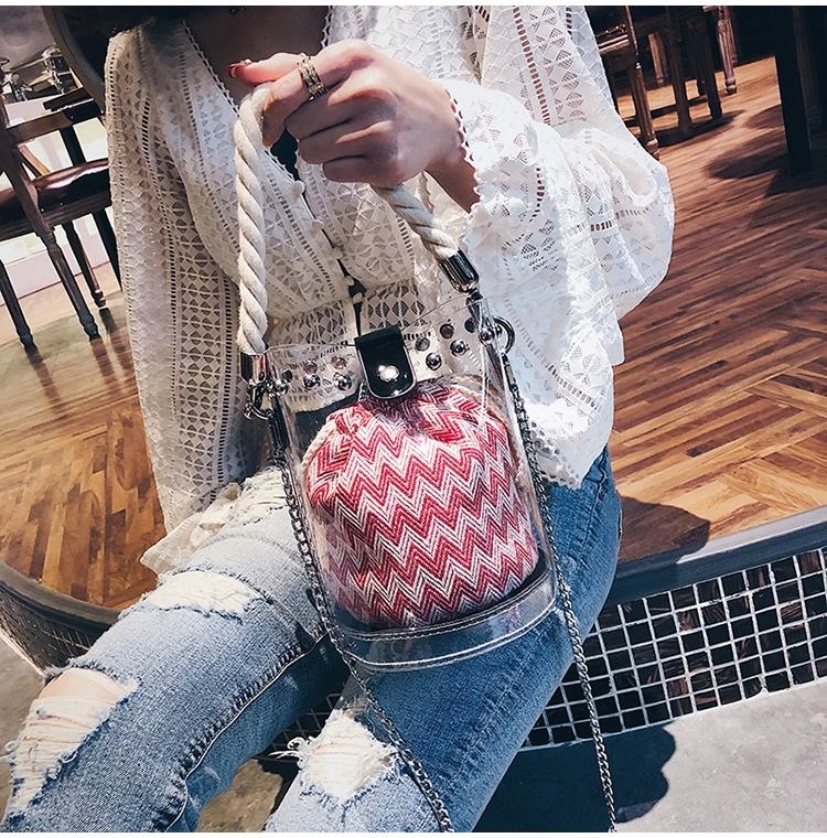 【関連キーワード】クリア ビーチバッグ ショルダーバッグ バケツ 3色 大人可愛い チェーンバッグ