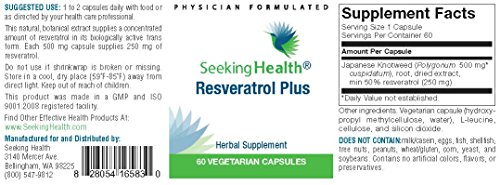 Seeking Health's Resveratrol Plus provides 250 mg of the polyphenol resveratrol, a powerful antioxidant that may also support nitric oxide production and circulatory health. This natural, botanical Japanese Knotweed extract supplies a concentrated amount of resveratrol in its biologically active form. Each 500 mg capsule supplies 250 mg of resveratrol. Antioxidants help protect the body against free radical damage and daily exposure to environmental toxins increases the need for antioxidant protection. In addition to being natural antioxidants, many vitamins and minerals also help bolster the immune system, making it better able to fight off germs and allergens and keeping it from being compromised due to stress or fatigue. Seeking Health provides supplements because we believe in order to remain healthy in our toxic, nutrient depleted soils, high stress environment, one must supplement with pure, well-formulated nutrients. It is important for you to know that we do way more than provide supplements. We educate you how to approach your health through dietary, lifestyle, mental and nutritional needs. We have an ever-growing interactive Learning Center providing research articles, podcasts, videos, blog posts, presentations and radio shows. We are here to see you get better and then stay better.