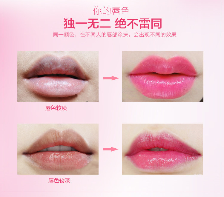 这是一款润唇+口红2合1的樱花魔法唇膏,平时的口红都是偏干,得一层层上润唇膏做为打底再上口红,不然太干会不自然严重的话会导致脱皮。这款就方便了~ 三秒拥有好唇色。此口红三效合一,既润唇又红润唇部还防晒。染唇不沾杯不掉色,很持久一天下来吃东西什么的都不掉色噢~ 擦了一遍后一整天都不用再补色了。随着体温变颜色,每个人擦出来的效果都不一样噢~ 能粉嫩双唇,全效滋润并修复干裂干燥的唇部,避免唇部老化,唇线等其它唇膏无法满足的需求。这个不同于其它产品,采用的原材料都是好料,蜂蜡和花类好料,蜡的成分特别纯,色素也是纯天然可以食用的。用榨汁液和提取做出来的质量还不同,我们是用提取的,费力费材,安全。连原料的好坏都敢教你们对比,可想而知没有华丽的广告和包装,却有高等的质量!坚决不采用便宜的原料伤害唇部。即使吃下去也没有任何问题,不用担心卸妆吃东西喝水,通通都不用才擦掉,还可以避免沾碗沾杯的尴尬。长期使用还可以改善唇色暗沉,唇黑,干燥,细纹等唇部问题,不含贡铅,绝无添加,100%纯净天然,瞬间变色,持久不掉色。你还在用各种品牌化学的口红吗?你还在用迪ao 一支一百多两百的变色唇膏吗?化学口红越用色素会越来越沉淀在唇部里面,导致唇色越来越黑。SO~! 我们的变色唇膏不是一般的唇膏。( 我们是最原始的味道不像市面的全部加入香精对唇部有害!所以不要觉得味道怪噢!那是最安全的味道!)