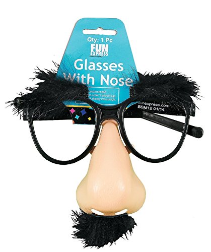 -. Binding : Eyewear -. Brand : Fun Express -. Color : black beige -. Department : mens -. EAN : 0887600782334 -. Feature : Nose with a Mustache and Bushy Eyebrows and Glasses. / Humorous accessory for anyone. / A wonderfully weird party favor. / Use while playing silly party games at parties. / (6 Pack) Plastic. 5". -. PackageQuantity : 1 -. ProductGroup : Apparel -. ProductTypeName : ACCESSORY -. Size : One Size -. Title : Huge Nose with a Mustache and Bushy Eyebrows on Glasses. (6 Pack) Plastic. 5" -. UPC : 887600782334