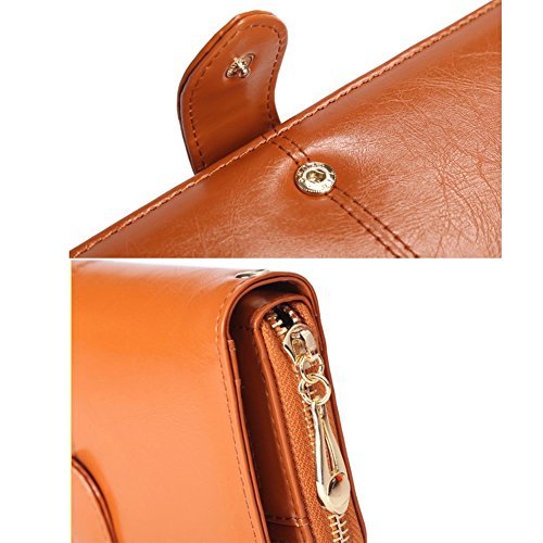 -. Binding : Apparel -. Brand : ETIAL -. ClothingSize : Large -. Department : womens -. Feature : Made of leather / Lined interior / Measurements: 7.5"long 3.8"high 1.5"wide, strap drop 7.1" / Features 2 full-length compartments, 8 card slots with 2 ID windows along with multiple slip pockets,and zipper pocket / Ideal for every woman,this sophisticated wallet makes a chic statement -. ProductGroup : Apparel -. ProductTypeName : ACCESSORY -. Size : Large -. Title : ETIAL Womens Wax Leather Large Capacity Bifold Checkbook Wallet with Wrist Strap