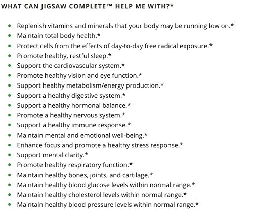 ENERGY: Support healthy metabolism/energy production with Jigsaw Complete essential daily multivitamin packets.