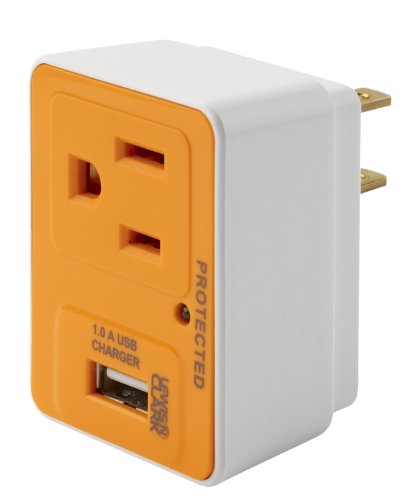 This compact surge protector designed for travel, converts a single ac outlet into two outlets, one for a standard or grounded north american ac plug, another for usb