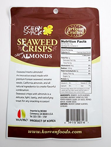 -. Title : Ocean Snack Seaweed Crisps, Almonds, 1.06 Ounce (Pack of 12)