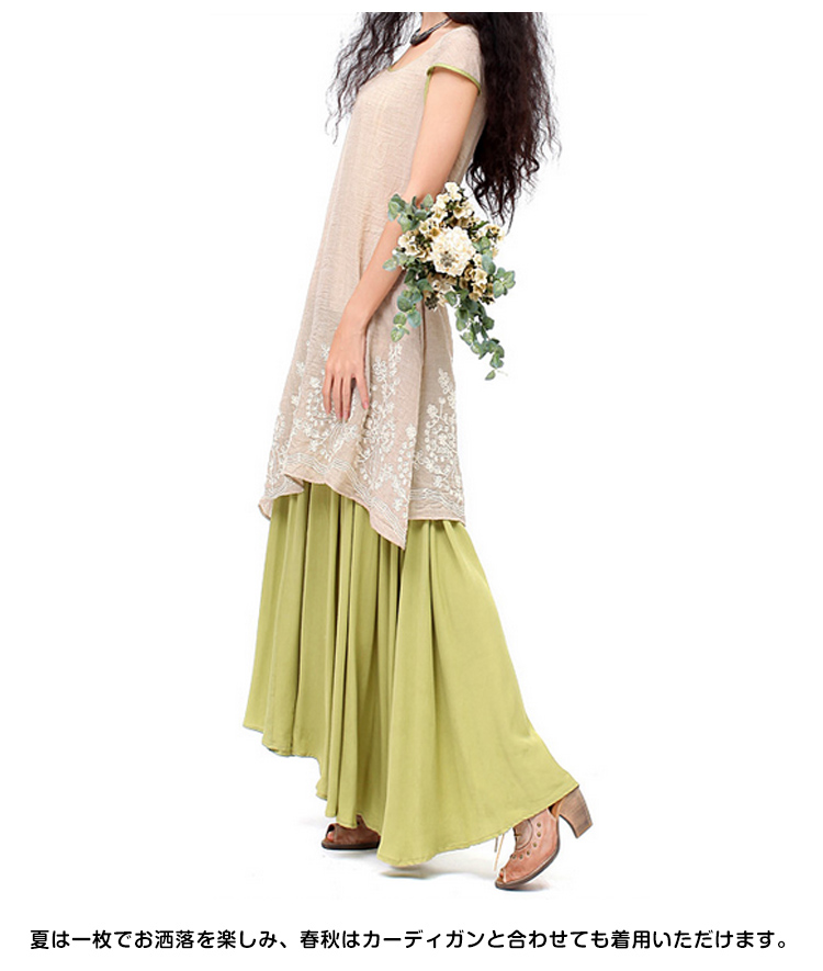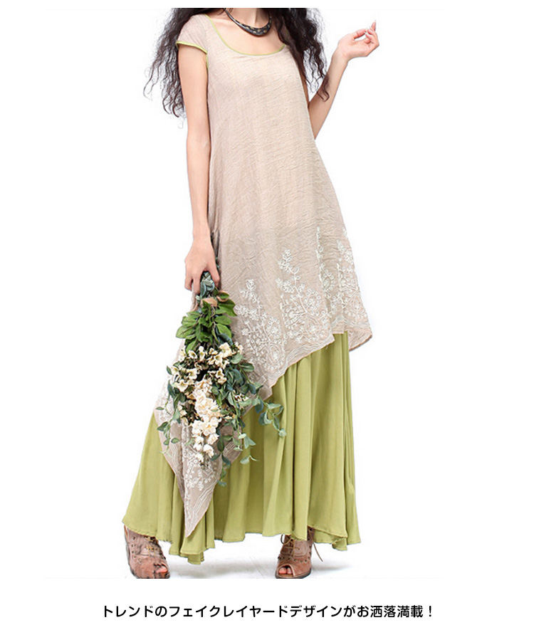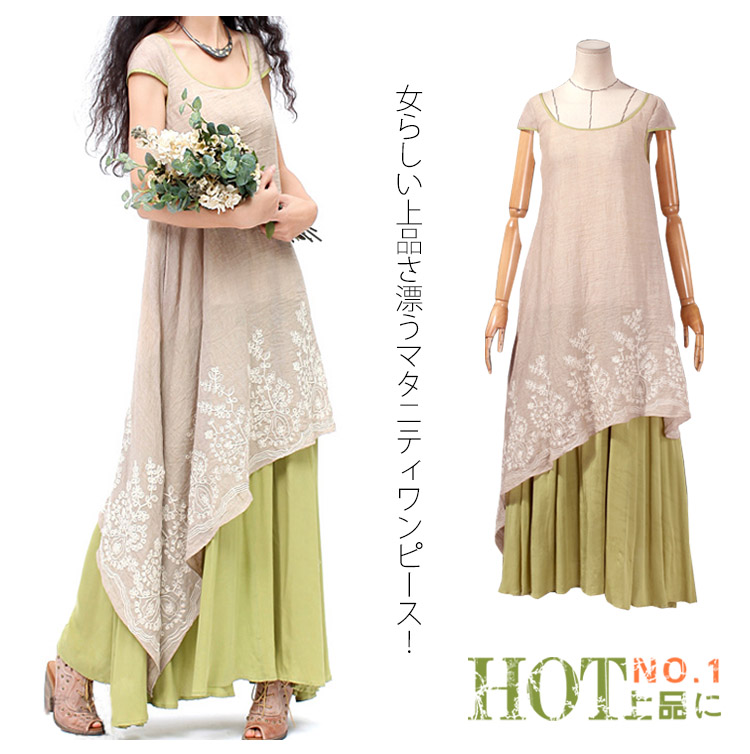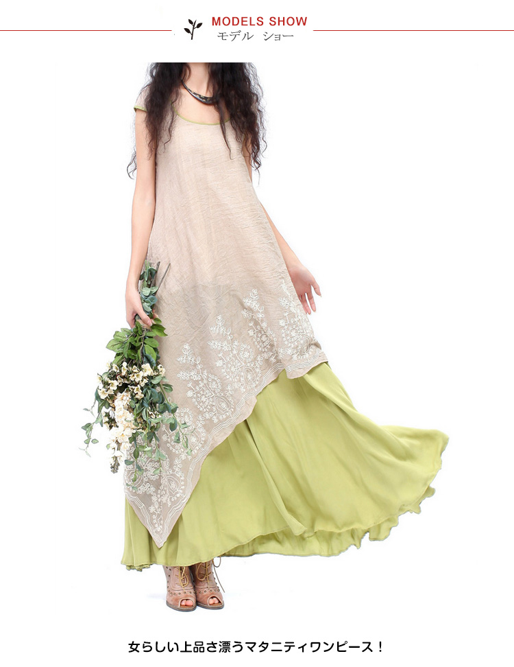 | 女らしい上品さ漂うマタニティワンピース!贅沢ほどたっぷりと生地をとり、女性らしい美しいフレアラインを生み出しますトレンドのフェイクレイヤードデザインがお洒落満載!薄手綿麻素材が風通しもよく、肌に馴染む最高の着心地を与えてくれます?夏は一枚でお洒落を楽しみ、春秋はカーディガンと合わせても着用いただけます。通勤やちょっとしたお出掛けにも充分に対応出来る一枚です☆ | |
