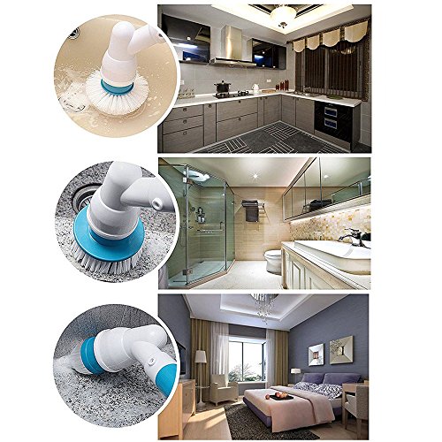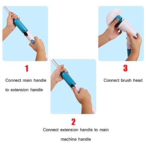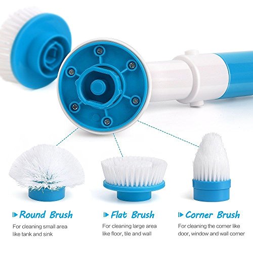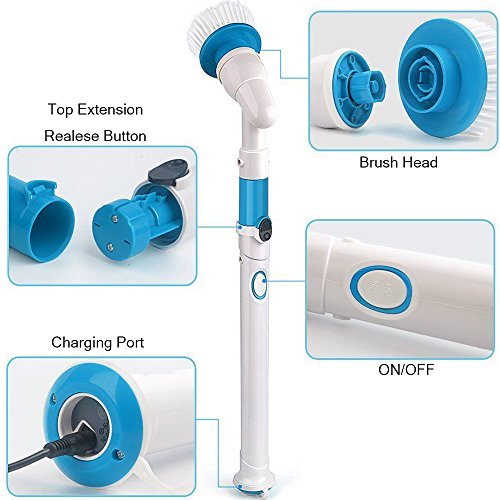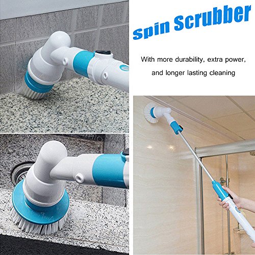 Spin Scrubber Rechargeable Cordless Power Electronic Brush Smart Home Mop Brush with Extension Handle and 3 Brush Head for Kitchen Bathtub Tiled Bathroom Floor Wall