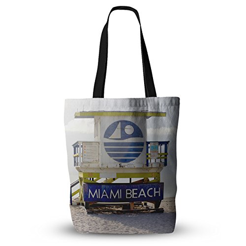 KESS InHouse Philip Brown "Miami Beach Lifeguard" Blue color Everything Tote Bag, 18" x 18", Multicolor