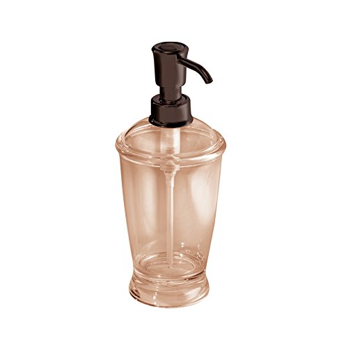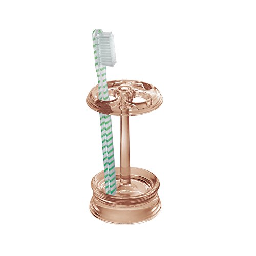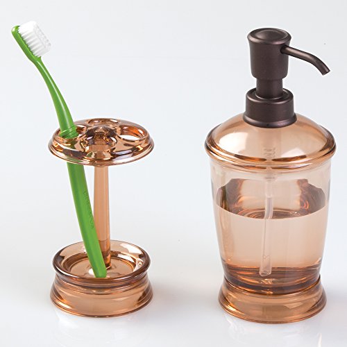 mDesign Plastic Soap or Lotion Dispenser Pump with Toothbrush Holder Stand, 2 pc Bathroom Accessory Set - Sand Brown