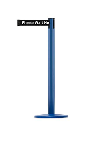 Tensabarrier 889U-23-23-MAX-NO-BCX-C - Blue Post, 2" Wide, 13' Length Black Please Wait Here Belt , 38" Height, 2.5" Wide, 156" Length